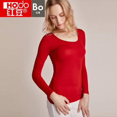 Đồ lót nữ màu đỏ đậu mỏng phần mùa thu quần áo cổ tròn modal mỏng chạm đáy áo sơ mi mùa thu và mùa đông thời trang áo ấm một mảnh áo giữ nhiệt trẻ em