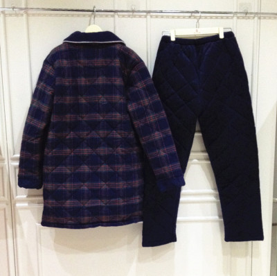 Đồ ngủ nam Fenteng cotton mùa đông bông dày ba lớp cộng với đồ ngủ nhung nam áo khoác cotton dài M8758448 pijama nam cotton