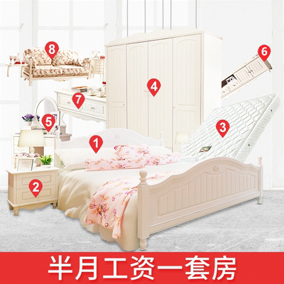 Đồ nội thất mục vụ Hàn Quốc tủ quần áo gỗ rắn sáu phòng cưới đôi đầy đủ tổng thể đồ nội thất phòng ngủ kết hợp ghế sofa