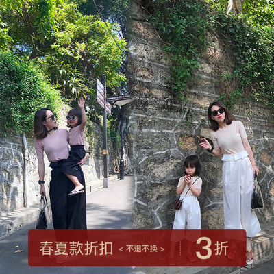 Đôi tai to con voi mặc quần ống rộng màu vui nhộn 2018 hè mới mẹ và con gái thời trang lửng mỏng phần chín quần áo form rộng cho cả gia đình Trang phục dành cho cha mẹ và con