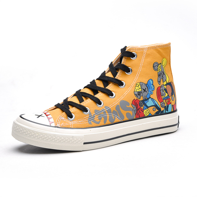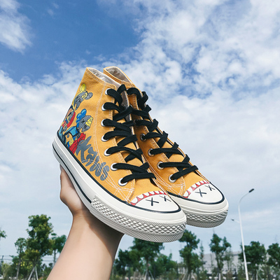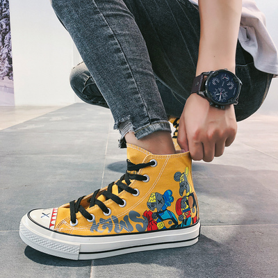 Đôi vợ chồng mùa hè ulzzang phong cách Harajuku nam và nữ giày vải cao vẽ tay hoạt hình graffiti giày skate in - Plimsolls giày thể thao nam cao cấp