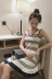 Dora Chaoren Hall Hồng Kông hương vị retro chic sọc V-Cổ xếp li đan đầm nữ Slim ren vest váy váy bó eo