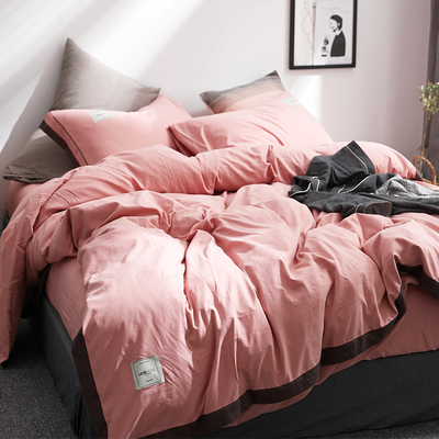 "Duo amy nước ngoài" mạng Bắc Âu đỏ rửa sạch bông trải giường gia đình bốn ins gió rắn thoải mái màu chăn quilt - Bộ đồ giường bốn mảnh chăn ga gối đệm khách sạn