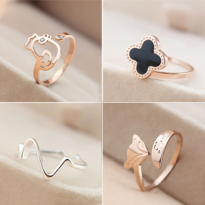 Đuôi nhẫn nữ 18k vàng hồng titan thép Nhật Bản và Hàn Quốc ngón tay út ngón tay cô gái trái tim in nhẫn nhẫn thủy triều đỏ di nhẫn kim cương nam pnj Nhẫn