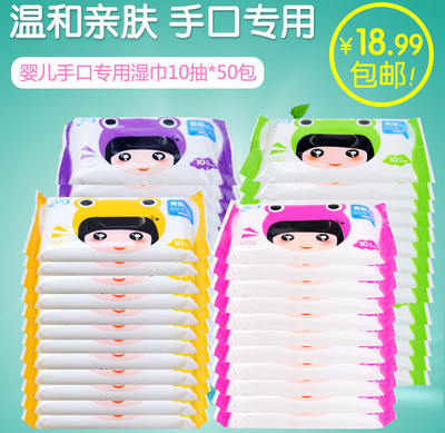 Em bé sơ sinh lau tay người lớn dùng một lần túi nhỏ khăn giấy ướt bán buôn 10 miếng * 50 gói khăn giấy Khăn ướt