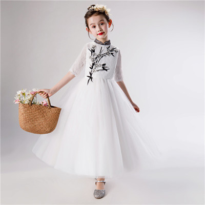 Erhu Guzheng trang phục nữ trẻ em ăn mặc phong cách Trung Quốc cổ điển thanh lịch sườn xám cổ tích trắng váy cưới mùa thu - Váy trẻ em bộ đồ vest bé trai lịch lãm Váy trẻ em