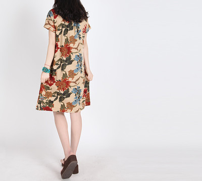 Fat mm size lớn Nữ phiên bản Hàn Quốc của phần dài của túi cotton và vải lanh Váy ngắn tay linen hoa lớn Một từ phụ nữ mang thai váy mùa hè - A-Line Váy váy đầm xòe A-Line Váy
