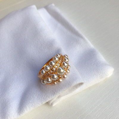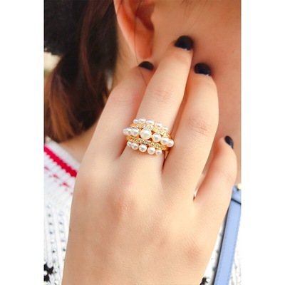 Frontier phù thủy mô hình tùy chỉnh! Kim cương mạ vàng dát sang trọng nhiều lớp ngọc trai nhỏ khí chất lady in gió - Nhẫn nhẫn vàng nữ 18k Nhẫn