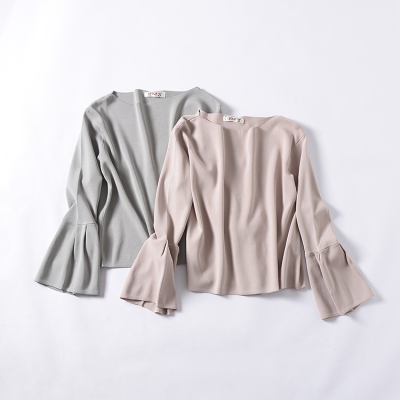G 20 Fall 2018 New Solid Color Joker Áo Len Trumpet Dài Tay Áo Tươi Tính Khí Áo Thun Top quần áo nữ Áo / áo thun