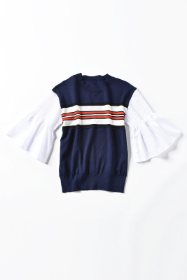 G 25 mùa thu mới lỏng mỏng sọc trumpet tay áo áo sơ mi hàng đầu 2018 Hàn Quốc thời trang hoang dã áo len áo thun nữ đẹp Áo / áo thun