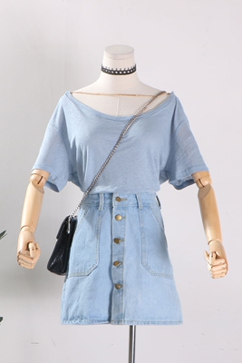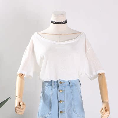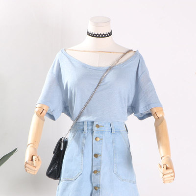 [] G 30 mới thời trang hoang dã Hàn Quốc phiên bản của lỏng thấp vòng cổ màu rắn Nhật Bản và Hàn Quốc cô gái T-Shirt tops áo phông nữ cao cấp