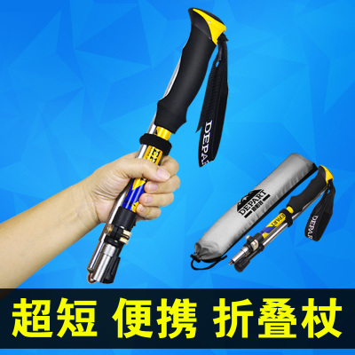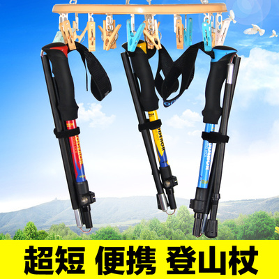 Gấp trekking cực ngoài trời khóa hợp kim nhôm telescopic carbon mía đi bộ đường dài siêu ánh sáng ngắn đi bộ dính leo núi thiết bị gậy đa năng