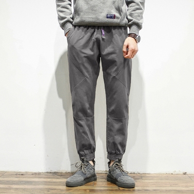 GBOY mùa đông rắn màu retro dây rút chân quần xu hướng thanh niên lỏng lẻo quần thường xuyên quần harem Nhật Bản quần jean ống rộng nam Quần mỏng