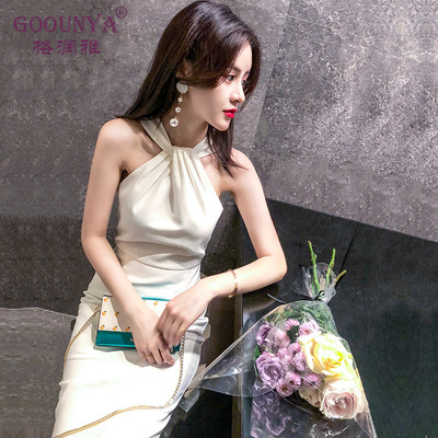 Ge runya váy nữ 2018 new sexy slim không tay halter dress thời trang tính khí mùa hè váy dài váy xếp tầng dài