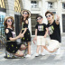 Gia đình bãi biển gia đình cha mẹ-con gạc đầm đen một bộ đồ 4 mảnh Hàn Quốc quần short ngắn tay - Trang phục dành cho cha mẹ và con áo thun đẹp cho cả nhà