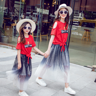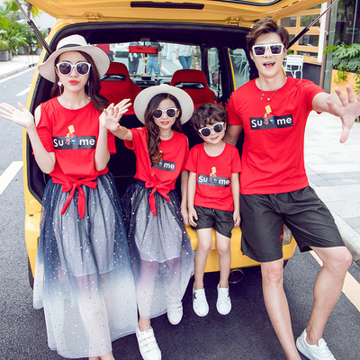 Gia đình cha mẹ và con cái, một gia đình gồm ba, bốn phụ nữ, phụ nữ 2019, làn sóng mới, mùa hè, rung chuyển, mẹ chồng, lưới đại dương, bộ đồ màu đỏ - Trang phục dành cho cha mẹ và con quần áo gia đình Trang phục dành cho cha mẹ và con