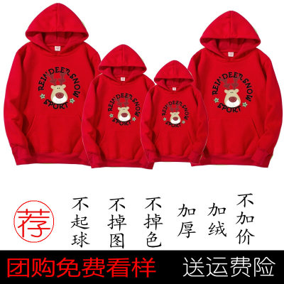 Gia đình mẹ và con gái Hàn Quốc trang bị áo khoác mùa thu đông cộng với áo len nhung trùm đầu 2018 Giáng sinh gia đình hai mẹ con trai và phụ nữ quần áo gia đình mùa đông