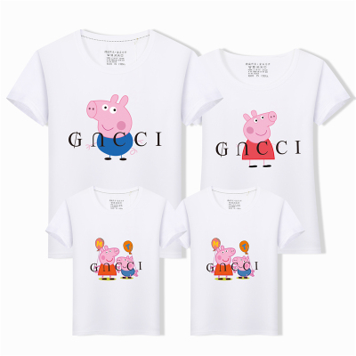 Gia đình mới 2019 trang bị cho một gia đình ba chú heo Nhà gia đình Peggy áo thun ngắn tay mẫu giáo phục vụ lớp mẫu giáo - Trang phục dành cho cha mẹ và con quần áo gia đình 4 người Trang phục dành cho cha mẹ và con