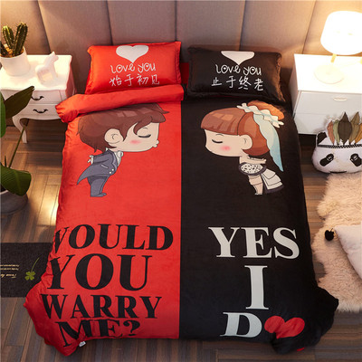 gia đình Net bốn chăn màu đỏ với tiền rung tờ công chúa phong cách áp dụng vài sáng tạo giường đôi tờ được trang bị - Bộ đồ giường bốn mảnh bộ chăn ga gối đệm cưới Bộ đồ giường bốn mảnh