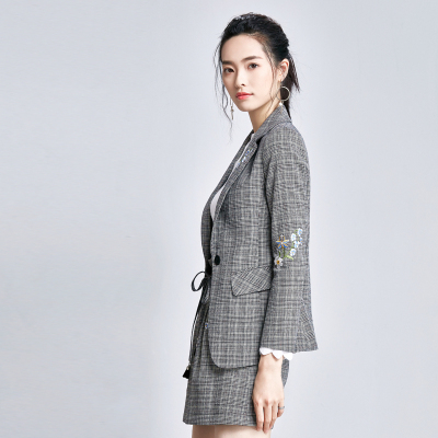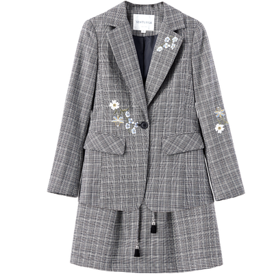 [Giá mới 199 nhân dân tệ] mùa đông kẻ sọc mới phù hợp với nhỏ phù hợp với một từ váy thời trang hai mảnh phù hợp với nữ áo khoác nữ hàng hiệu Business Suit