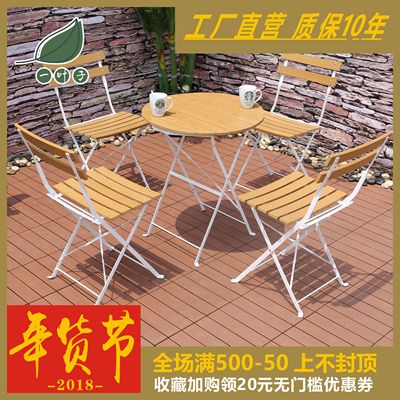 Giải trí ngoài trời đơn giản ban công không thấm nước nhựa gỗ đồ nội thất sân ngoài trời cafe cổ gỗ gấp bàn ghế đặt bàn ghế sắt ngoài trời Bàn ghế ngoài trời / sân