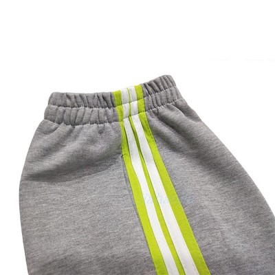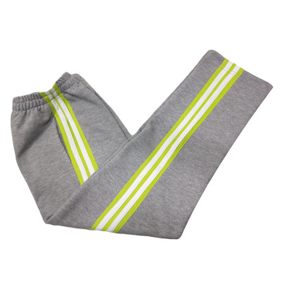 Giảm giá tùy chỉnh mùa hè siêu mỏng màu xám đồng phục học sinh quần với trái cây màu xanh lá cây rộng bên hai màu trắng thanh thẳng bông quần áo đồng phục học sinh mùa hè