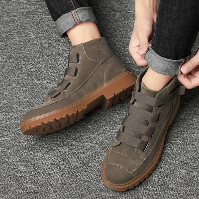Giày cao gót mùa đông dụng cụ da cộng với nhung booties Giày cao eo bình thường Giày nam ấm mùa đông không có giày ren nam giày cao cổ bộ đội Giay cao