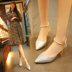 Giày cao gót nữ mùa hè 2018 hè mới đính cườm nhọn giày nữ đế xuồng giày đế xuồng đế xuồng Hàn Quốc sandal nữ cao gót