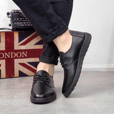 Giày nam đế xuồng chống trượt giày không thấm nước Giày đầu bếp mềm bề mặt mềm Bề mặt da trơn màu đen Giày da công sở Giày thấp giày anta nam Giày thấp