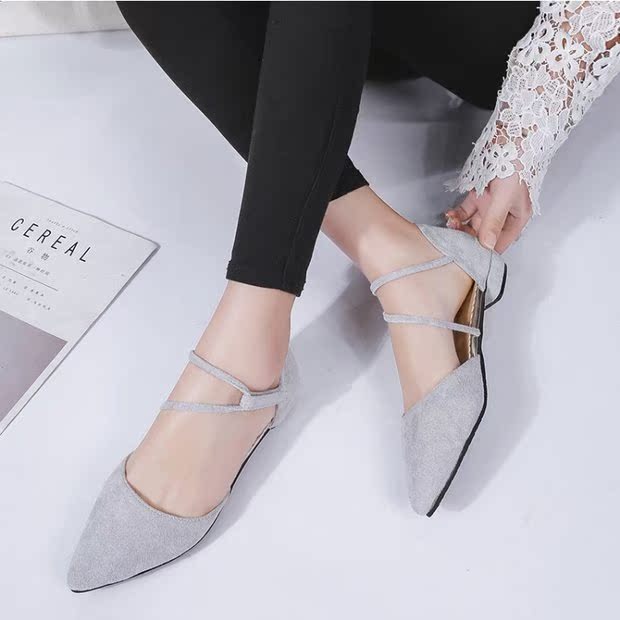 Giày nữ 2018 mùa hè mới phiên bản Hàn Quốc của sandal hoang dã dày có mũi nhọn baotou quai ngang với giày thấp sandal nữ đế thấp