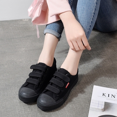 Giày vải nữ Velcro tất cả giày đen công sở xuân 2018 phiên bản mới của Hàn Quốc của giày đế bằng màu trắng hoang dã dành cho sinh viên giầy bốt nữ Plimsolls
