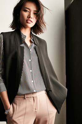 Gió hoàn thành phong cách nhà! Độc thiết kế thích hợp axit axetic spell lụa thanh lịch và cởi khuy áo WT0181 áo khoác nữ form rộng Áo vest