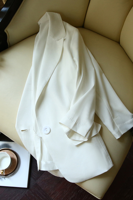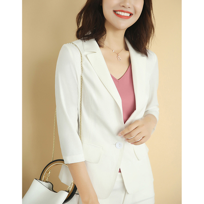 Giống như được thiết kế riêng, không chỉ là một sân mỏng! Thoải mái bảy điểm tay áo mùa hè mỏng phù hợp với có kích thước lớn áo khoác nữ đẹp Business Suit