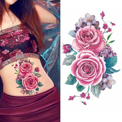 Gốc rose flower kéo dài cơ thể chống thấm nước painted photo studio ảnh bìa sẹo bụng đùi nhãn dán hình xăm nữ hình dán xăm mini Vẽ trên cơ thể