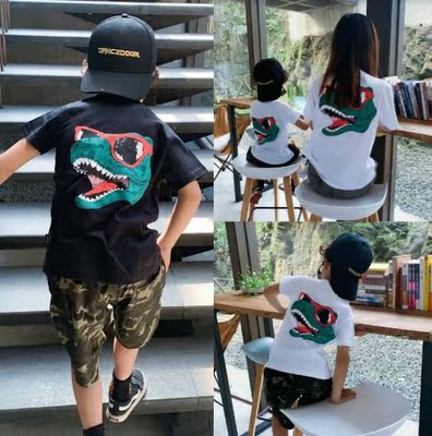 Gói dành cho gia đình trẻ em Mùa hè 2019 Làn sóng mới Gia đình Ba gia đình Áo thun khủng long ngộ nghĩnh - Trang phục dành cho cha mẹ và con quần áo bé trai