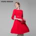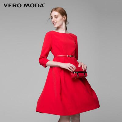 [Gown] VeroModa vòng cổ mới bảy điểm tay áo cao eo Một swing dress | 31717C501 váy ôm body