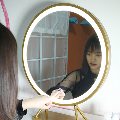 Gương tròn mặc quần áo vàng máy tính để bàn nhà máy tính để bàn net ghế đỏ gương trang điểm Bắc Âu dẫn với ánh sáng - Gương gương nghệ thuật