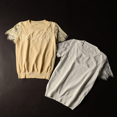 H 1 2018 mới mùa thu Hàn Quốc phiên bản của cổ tròn màu không tay ren khâu là áo len mỏng áo sơ mi nữ quần áo nữ đẹp