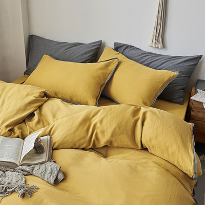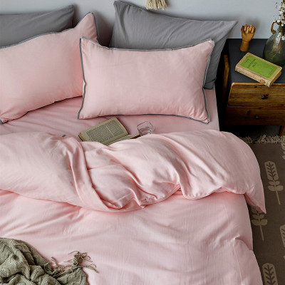 Hai lớp sợi ba hoặc bốn bộ giường ngủ màu nude đơn giản bông cotton tấm chăn bao gồm rắn màu tương phản màu bộ phụ kiện gối mền 2 trong 1 Bộ đồ giường bốn mảnh