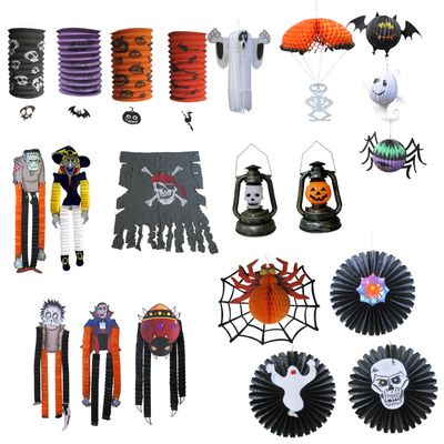 Halloween trang trí thanh mẫu giáo bố trí cung cấp đạo cụ mạng nhện bí ngô đèn lồng kéo hoa treo đồ trang trí treo cờ - Sản phẩm Đảng / Magic / Hiệu suất phụ kiện hóa trang halloween