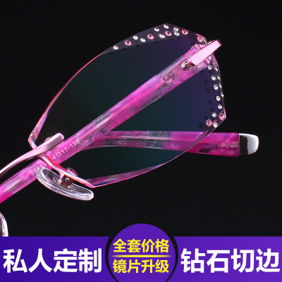 Hàn kim cương cắt cạnh cận thị kính màu nữ phim không vành kính Ultralight ánh sáng xanh hoàn thành khung kính kính giả cận