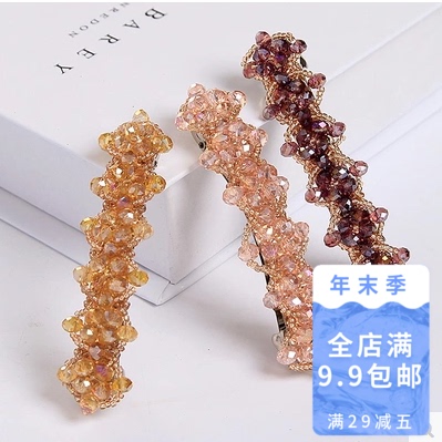 Hàn Quốc bốn hàng phụ kiện tóc kẹp pha lê Phiên bản Hàn Quốc của mùa xuân clip từ clip đầu clip trang sức rhinestone tinh tế hạt bán buôn kẹp nơ bản to Phụ kiện tóc