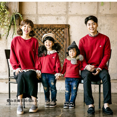 Hàn Quốc cha mẹ con mùa thu và mùa đông Giáng sinh Năm mới quần áo của một gia đình ba áo len đỏ dày và cashmere giản dị gia đình mẹ và con gái quần áo gia đình mùa đông hàn quốc