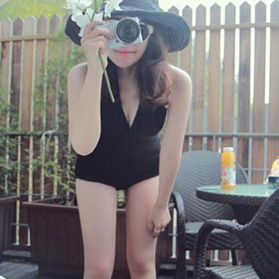 Hàn Quốc đen cổ khoe lưng trần gợi cảm áo tắm nữ liền kề bụng thon gọn ngực bảo thủ mùa xuân nóng bỏng phù hợp với nữ - Bộ đồ bơi One Piece đồ bơi liền thân Bộ đồ bơi One Piece