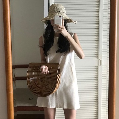 Hàn Quốc in gõ cổ điển vest màu đầm dễ thương tuổi váy sơ mi