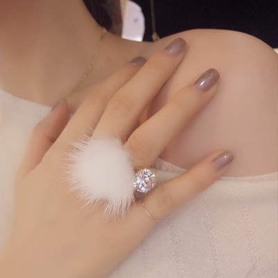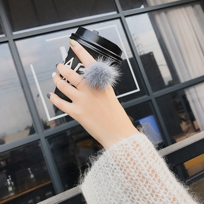 Hàn Quốc lông chồn bóng tròn nhẫn mở ngón trỏ thời trang cá tính đuôi vòng Nhật Bản và Hàn Quốc phụ kiện trang sức thủy triều nữ nhẫn