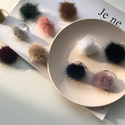 Hàn Quốc mùa thu và mùa đông nước ấm 貂 tóc bóng tròn mở tóc bóng tròn cá tính fluffy lưới phụ nữ thủy triều đỏ nhẫn cưới doji Nhẫn