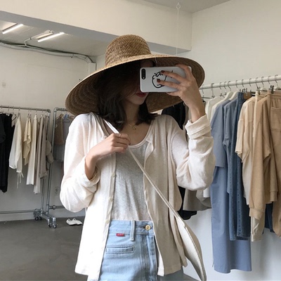 Hàn quốc phiên bản của đầu mùa thu chic lỏng dài tay cổ tròn phần mỏng kem chống nắng áo len áo len áo + bên trong một vest nhỏ phù hợp với đồ vest nữ