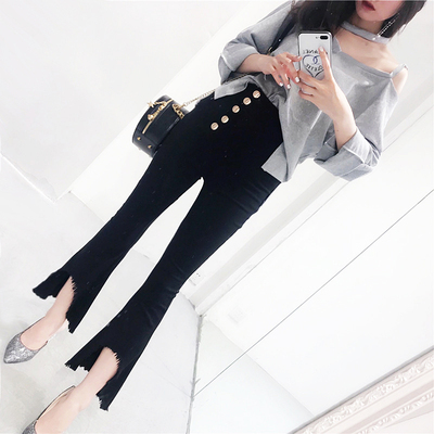 Hàn Quốc phiên bản của đơn ngực khí hoang dã bùng quần nữ 2018 mùa thu và mùa hè mới cao eo slimming jeans quan jean nu Quần jean