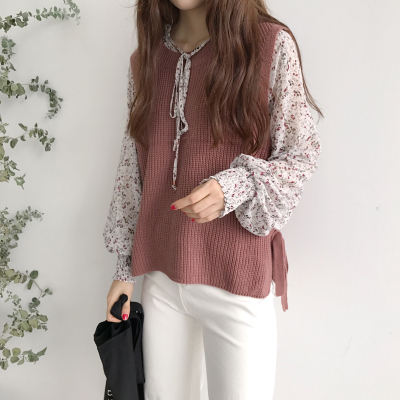 Hàn quốc phiên bản của lỏng vòng cổ áo thun không tay áo len vest của phụ nữ áo sơ mi hoang dã màu rắn chia dây đeo áo len vest áo nữ công sở Áo / áo thun
